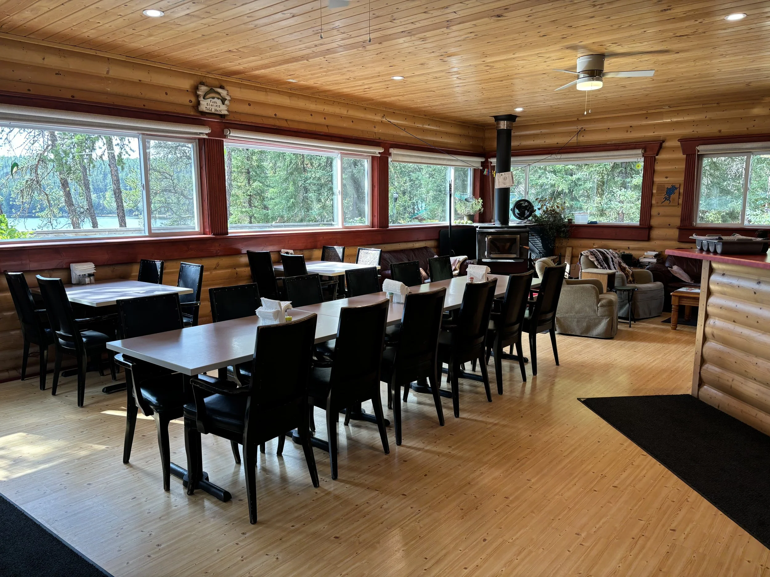 Our 1,600 square foot lodge is the main hub at Wilderness Family Outfitters. It is a place to get together with friends and family, to share stories and play games, and to simply relax and enjoy the moment. Inside of the lodge, guests have the opportunity to purchase WFO merchandise, as well as fishing lures and equipment from our tackle wall.